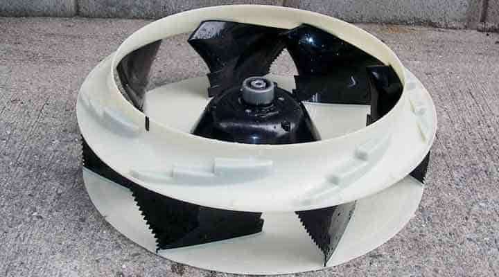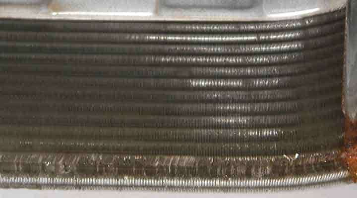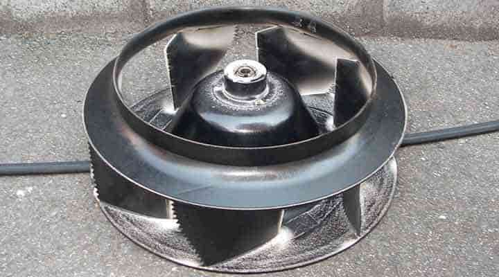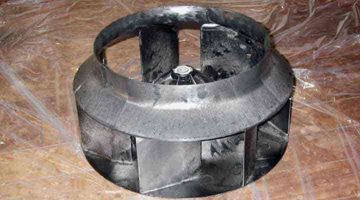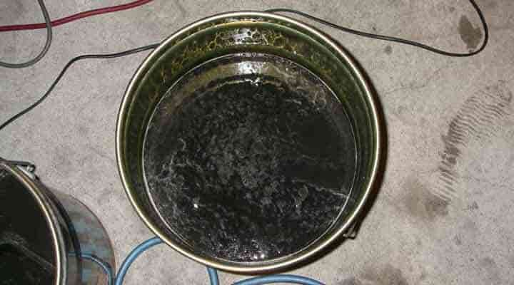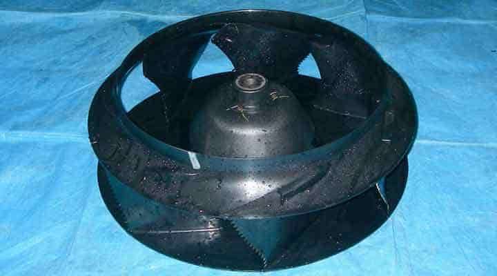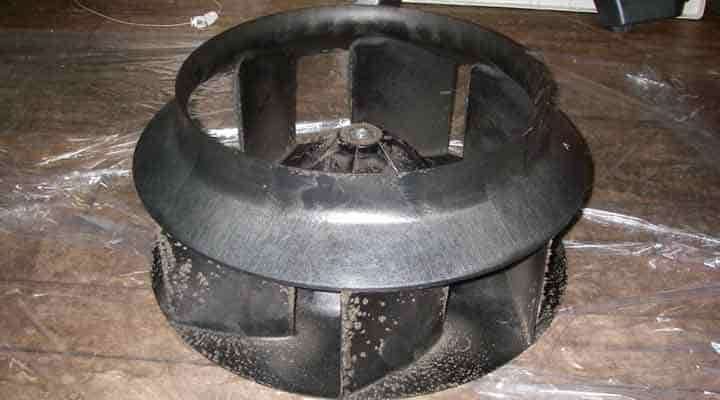 風を通す役割の熱交換器の汚れはヘドロ状、風の流れをつくるファンには粉がたまっていました。このような状態ではエアコン本来の働きは期待できません。熱交換噐の奥の奥まで粉の汚れがあるので、汚れを除去するために使用した水の量は通常の15倍。これだけの水量を使ってやっときれいな熱交換器に戻りました。