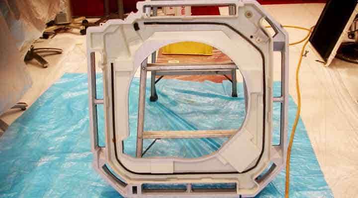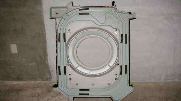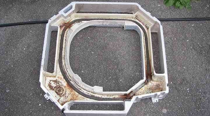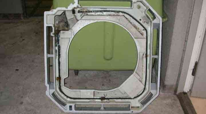 靴を作る工場。大量の樹脂の粉が吸着してましたので、洗浄薬品の噴霧→高圧洗浄を何度か繰り返し行いました。また、ドレンパンには、粉が水を吸って膨らんだ汚れがヘドロ状になって溜まっていました。ドレンポンプもかなり汚れていました。