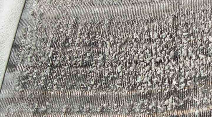 土埃がエアコン内部に吸着し、他の汚れと結合して臭いの原因になっていました。